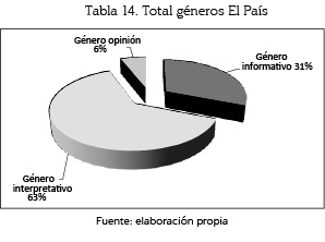 A diferencia de ABC, el periódico El País al igual que El Mundo empleó el género interpretativo por encima del informativo lo que indica su preferencia por ofrecer informaciones con la valoración del periodista, más allá de resultar meramente informativas.