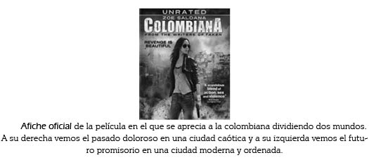 La película Colombiana enfatiza con gran fuerza visual el impresionante paisaje de las ciudades. A diferencia de las dos películas analizadas anteriormente, esta historia no muestra el lado rural colombiano o de los Estados Unidos; por el contrario, acentúa las características de las ciudades, como queriendo declarar por medio de estas, las grandes diferencias entre el mundo urbano moderno y el de la barbarie.