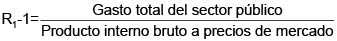 El indicador R2 sólo toma en el numerador a los gastos reales, pues este gasto es el que directamente hace el Estado al hacer compras de una parte del PIB, ya que en el gasto en transferencias el que gasta directamente no es el Estado, sino los particulares beneficiarios de las transferencias estatales. 1