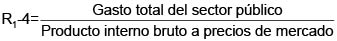 En Colombia el indicador más usado es R1-4, que es el índice que nos mide el gasto total del sector público sobre la renta nacional, siendo esta igual al producto interno bruto a coste de factores. Este indicador nos muestra el porcentaje total de gastos gestionados por el Estado respecto del PIB a coste de factores.
