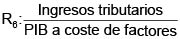 Esta relación se conoce como presión fiscal, y nos indica el porcentaje que de la renta nacional el Estado se lleva en forma coactiva. Del numerador se excluyen los ingresos no tributarios y el empréstito público, contabilizando sólo los ingresos que tienen carácter tributario, que son los que miden el esfuerzo fiscal de una nación, es decir, la parte de la renta bruta que se retira de la renta privada para ir de manera definitiva al presupuesto estatal. Igual que en los índices anteriores, este índice puede mostrar otras versiones, así: