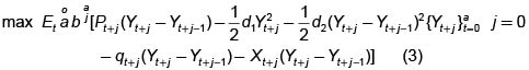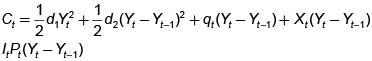 Sea Y la cantidad de gas natural explotada en el período t; donde (Y1 - Yt-1) denota la explotación del gas natural adicional ocurrido durante el período t. El costo de explotación del recurso durante este período está dado por4: