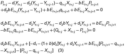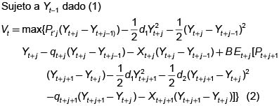 Se asume que Z, E y ¡ son procesos estocásticos de covarianza estacionaria, decir las raíces de los polinomios a (s), ¡(s) y f (s) están fuera del circulo unitario. Para encontrar la regla de decisión que maximiza (1) en primera instancia se aplica la ecuación de BELLMAN5 (2) que da como resultado la ecuación de EULER (3).