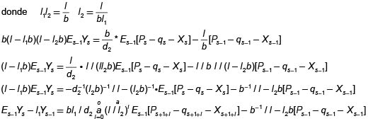 Usando las fórmulas de predicción desarrolladas por Hansen y Sargent, en conjunción con 6.7 y 8. se tiene que: