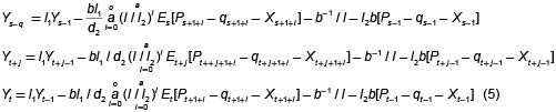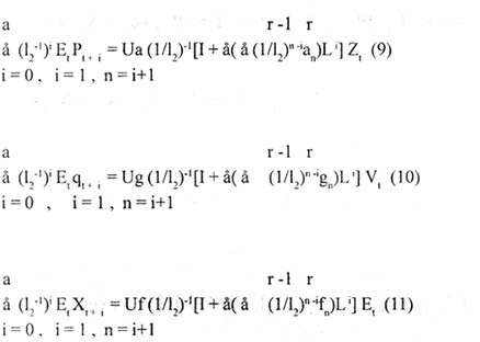 Se puede observar que tanto valores presentes y rezagados de Zt y Vt, aparecen en la regla de decisión porque ellos ayudan a predecir valores futuros de Pt y qt, lo que en un contexto de coito plazo trae la implicación de que cualquier proceso estocástico que cause en el sentido de granger a Pt, qt deberá ser incluido en la regla de decisión para Yt.