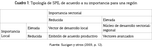 Lemos (2003) apunta las diferencias conceptuales entre APL y SPIL. Los APL pueden ser definidos como aglomeraciones de agentes económicos, políticos y sociales con foco en un conjunto específico de actividades económicas, que presentan vínculos e interdependencias. Por su parte, los SPIL son aquellos APL cuya interdependencia, articulación y vínculos consistentes resultan en interacción, cooperación y aprendizaje, lo que posibilita las innovaciones de productos, procesos y organizacionales, y, por lo tanto, la competitividad empresarial y capacitación social.