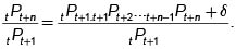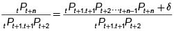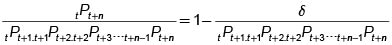 Entonces Juan emite un derecho por una unidad monetaria para ser entregada a comienzos del período n, con un valor de tPt+n.Esta cantidad la invierte inmediatamente en un contrato a un período y a comienzos del siguiente período tendrá