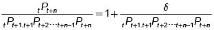 Si tPt+n es el precio de una unidad monetaria comprada en el período t para ser entregada en n períodos después y t+iPt+i+1 es el precio de una unidad monetaria comprada en el período t+i para ser entregada un período después, para i = 0, 1, ... , n-1, entonces tPt+n = tPt+1.t+1Pt+2, ... , .t+n-1Pt+n (7) es el precio libre de arbitraje.
