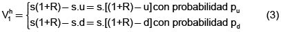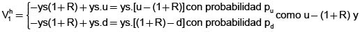 (1-R)-d son números positivos, es imposible que Vh1 sea positivo en ambos casos, independientemente del signo de y, y por lo tanto es imposible que Vh1 sea positivo con probabilidad uno. En otras palabras, no existen posibilidades de arbitraje.