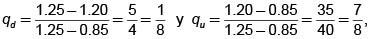 Consideremos una acción que vale $1200 en t = 0 y que en t =1 puede valer $1020 con probabilidad 0.45 ó $1500 con probabilidad 0.5512. Fácilmente podemos encontrar que d = 0.85 y u = 1.25. Consideremos una tasa libre de riesgo del 20% para el período, es decir, 1+ R = 1.2, entonces, debido a que 0.85 ≤ 1.20 ≤ 1.25, el mercado esta libre de arbitraje. La medida martingala está dada por