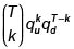 con las probabilidades asociadas a una variable aleatoria binomial con parámetros T (número de pruebas) y qu (probabilidad de éxito en cada prueba).