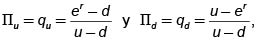 Dada la naturaleza de α, y α2, se pueden considerar como las probabilidades de u y d, qu y qd respectivamente, bajo una nueva medida de probabilidad Q, diferente de la probabilidad objetiva, P, que consideramos anteriormente. Es decir,