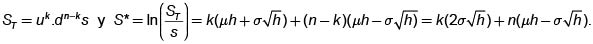 Consideremos el comportamiento del precio de la acción en el lapso desde t = 0, hasta nh = T. Si durante ese lapso de tiempo han ocurrido k movimientos "hacia arriba" y n-k movimientos hacia abajo, entonces