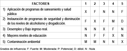 Posteriormente se definirá cada uno. Al tener el listado de los factores, se hará una relación final, debidamente agrupados en función de su área de valimiento, para posteriormente vaciarlos a un "cuadro relacionar donde se medirá el grado de influencia y dependencia de cada uno de tos grupos de factores en relación con los demás.