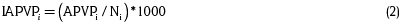 Donde I es la edad límite inferior establecida, L es la edad límite superior establecida, i es la edad de la muerte y di es el número de defunciones de la edad i. Para obtener el valor de los APVP expresado en índice (IAPVP) se utiliza la siguiente ecuación: