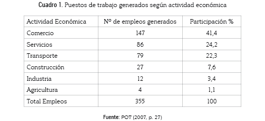 El anterior contexto muestra que si bien es cierto que las principales actividades económicas de la región son la agricultura y la ganadería, estos son los sectores que menor número de empleos generan en el municipio y, en particular, para los habitantes de la zona urbana, situación que se explica en razón del carácter minifundista y familiar de la producción. Se deduce, entonces, que el sector que mayor número de empleos genera en el municipio en general y en la ciudad en particular es el comercio, tanto formal como informal.