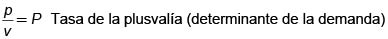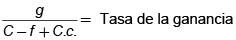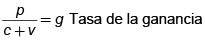 De la composición orgánica del capital depende la plusvalía (p) y de ésta la tasa de la ganancia. (6): p/c+v= g = tasa de la ganancia.