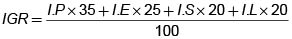 En el análisis de riesgo se obtiene un ÍNDICE GLOBAL de RIESGO (IGR). Este índice se alcanza a partir de otros subíndices y teniendo en cuenta el siguiente peso especifico que, por supuesto, puede ser discutible: