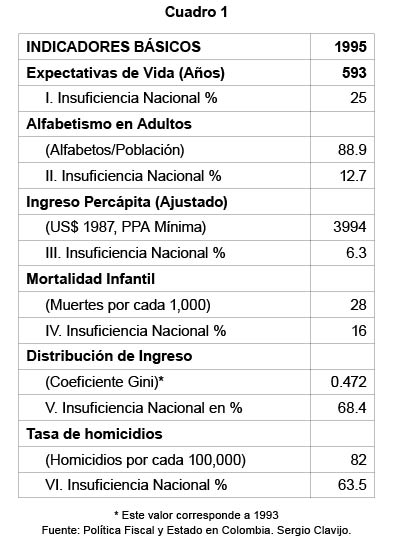 Indicadores Básicos de este desempeño de insuficiencias, se resumen en el siguiente cuadro: