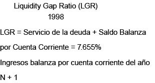 13Este resultado indica que el gobierno puede comprometerse a créditos tranquilamente, ya que en teoría significa que se puede endeudar por un año para cubrir el déficit en forma momentánea; debido a que el porcentaje de liquidez es del 7.655%).
