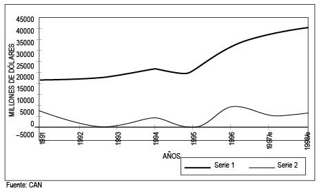 El país que se presume mostrará una notoria reducción en la inversión extranjera será Venezuela que pasará de U$ 4346 millones en 1997 a U$ 2400 millones en 1998, lo que representaría una reducción de U$ 1946 millones, en tanto que el país que reflejaría un leve crecimiento en la inversión extranjera sería el Perú.