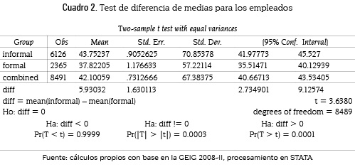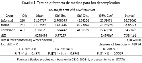9 Cabe anotar que a diferencia de los empleados, la media de la duración del desempleo no es estadísticamente significativa al 10% para los desempleados; esto puede deberse a la imposibilidad de capturar la duración exacta del desempleo en el momento de realizar la encuesta (véase anexo 1).