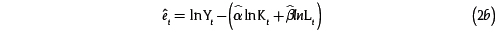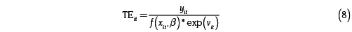 De acuerdo con la especificación, la eficiencia técnica del productor i en el momento t se puede calcular como: