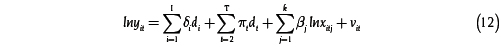 La existencia del parámetro αit implica un intercepto diferente para cada firma en cada momento del tiempo. La estimación del modelo implica utilizar T * 1 variables binarias para modelar todos los interceptos: