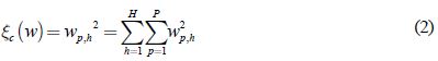 donde, w0 es un parámetro predefinido, el cual se elige según el criterio de una persona experta. El término wp,h/w0 hace que la penalización compleja tenga un comportamiento simétrico. Además, cuando