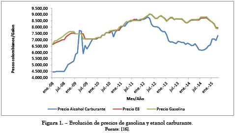 Ya para marzo de 2012 se observa una fuerte desvinculación de estos precios con tendencia a la baja para el alcohol carburante, manteniendo con poca variación los precios de la gasolina lo que hizo más atractivo al alcohol. Para enero de 2015 se evidencia una tendencia al alza en el precio de alcohol carburante y una baja en los precios de la gasolina, lo que puede ser explicado por los bajos precios presentados en el barril de petróleo.