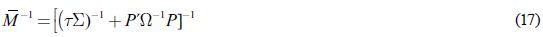 La matriz Ω representa la matriz de la confianza en las opiniones o expectativas, y dependen de la matriz de covarianza inicial Σ, el parámetro de incertidumbre τ y la matriz P: