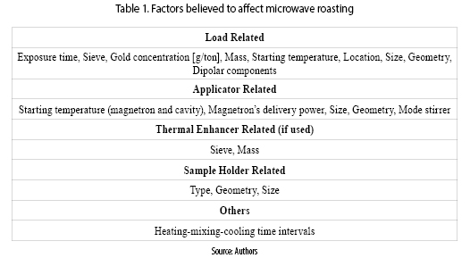 Amankwah et al. [ 4] performed an analysis of the influence of microwave heating in a free–milling ore. They found that by using dielectric heating, the crushing strength (an important variable for grinding) was reduced by 31.2 % and the reception of reagents was increased, thus reducing the leaching time from 22 hours to just 12. The percentage of recovery was over 95% (w/w), which complies with the recovery rate expected for a free–milling gold ore (see figure 1). The authors proposed some terms to rate a material response to the microwaves, which are inactive, active and hyperactive, being the latter the one that heats faster. One of the reasons they propose for the reduced time, is that due to the mixture of inactive and hyperactive materials, temperature rises quickly in some spots while remaining almost constant at others, thus creating thermal stress, which increases above the material's resistance and generates micro–cracks along the grain boundaries and through the grain itself.