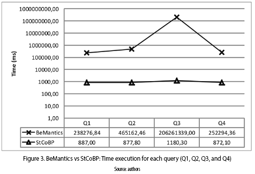The performance analysis estimates the average time execution of the StCoBP and BeMantics approaches (figure 3).
