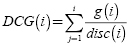 is similar to the CG but uses a discount factor (disc(i)) which gives more value to the first elements and reduces the value to the latest elements in a ranked list, in this paper the discounted factor used is: disc(i) = max1,logbi).