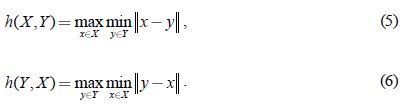 Las validaciones realizadas con base en la distancia euclídea establecen la distancia geométrica entre dos puntos. En el estudio de mallas, existe un método que aborda el problema de comparación de las mallas cuando la distancia punto a punto no aporta la suficiente información; por ejemplo, cuando una de las mallas tiene mucho menos puntos que la otra (caso del remallado poligonal anisotrópico). Este método, busca la comparación no solo de un punto, sino de grupos de puntos, mediante la medición del error basado en distancia de Hausdorff [16, 17] . Esta distancia se puede definir como la máxima distancia desde un conjunto de puntos, al punto más cercano de otro conjunto [18] . Si X = x1, x2, ... xm y Y = y1, y2, ..., yn son dos subconjuntos de puntos, la distancia Hausdorff se calcula como:
