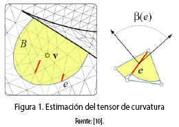 Gracias a la naturaleza lineal a tramos de la malla de entrada y con el fin de obtener un campo tensorial continuo en toda la superficie, se debe construir un campo de tensor de curvatura lineal a tramos, para estimar la curvatura del tensor en cada vértice e interpolar estos valores linealmente en los vértices de cada triángulo. Sin embargo, calcular en el nivel local el tensor de curvatura no es un procedimiento trivial, por lo que se define el tensor de curvatura en cada punto a lo largo del borde [13] .