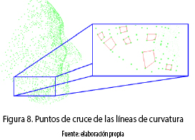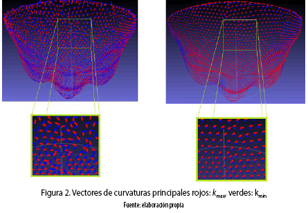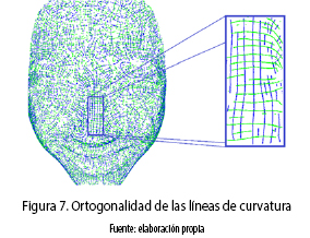 Los vértices de la malla final se definen como los cruces entre las líneas de curvatura máximas y mínimas, producto de la ortogonalidad que existe entre ellas (figura 7).