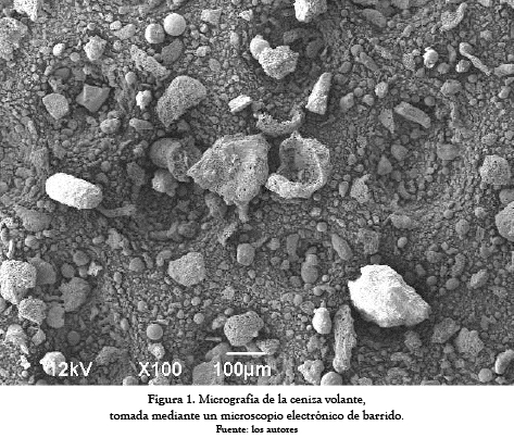 Los materiales poliméricos de pos–consumo y pos–industrial, fueron obtenidos de diferentes fuentes. El polietileno de baja densidad lineal fue reciclado de los empaques de bolsas de leche; el polietileno de baja densidad (Stretch film) es parte de la masa de residuos sólidos urbanos ya que combina usos varios en el hogar como protección y empaque, conservación de alimentos, trasteos o envíos, etc. El polipropileno proviene de los residuos de los procesos de fabricación de telas no tejidas. El carbón utilizado en la central termoeléctrica de Termozipa es triturado, pulverizado y posteriormente introducido dentro de la cámara de combustión. Los componentes orgánicos son oxidados y volatilizados durante la combustión mientras que una gran parte de la materia mineral es transformada en subproductos residuales sólidos: cenizas volantes y escorias. Las cenizas volantes están compuestas por partículas que debido a su tamaño pequeño son arrastradas por el flujo de gases que se generan durante la combustión del carbón. Para retener las cenizas volantes del flujo de gases que salen de la cámara de combustión y evitar que sean emitidas a la atmósfera, se emplea un sistema de retención denominado precipitador electrostático, el cual presenta una mayor eficiencia, por lo general superior al 99,5 % [17]. Las cenizas volantes se recogen en las tolvas de los precipitadores electrostáticos, desde donde son transportadas a lugares de almacenamiento, situados en balsas de decantación. Esta ceniza volante se caracteriza como clase F cenizas, según la norma ASTM especificación estándar C 618 [18]. Las partículas fueron principalmente las esferas, como se muestra en la fotomicrografía electrónica de barrido en la figura 1.