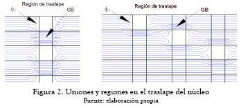 Las regiones de unión son las ''regiones más calientes'' en el núcleo. Como mencionan [1] y [2], muchos parámetros geométricos están involucrados en la configuración de la unión, tales como la longitud del entrehierro de aire g, la longitud del traslape a, cantidad de láminas por paquete s y en especial el número N de pasos en las regiones del traslape, como se aprecia en la figura 1.