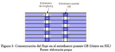 En las uniones multi step–lap el número de entrehierros es incrementado, por tanto la concentración de flujo en el área de unión en el entrehierro puente GB es reducida, como se ve en las figuras 3 y 4.