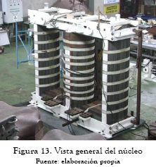Se describen las etapas para cálculo del flujo de operación del núcleo, circuito de prueba para la saturación del mismo, consideraciones para realizar la inspección termográfica y medición de las pérdidas de vacío, selección del tipo de lámina y técnicas de ensamble empleadas.