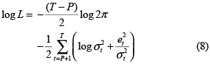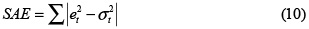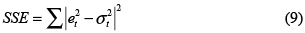 In eq. (8), T is the number of observations used for parameter estimation. The performance of the considered models is measured using two criteria: the sum of squared errors (SSE):