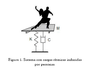 Las actividades rítmicas como el baile, los ejercicios aeróbicos, saltos, etc. son consideradas cargas dinámicas armónicas. En la figura 1 se presenta el modelo básico de una pareja bailando sobre un sistema de entrepiso, el cual es considerado como un sistema masa-resorte con amortiguamiento viscoso.