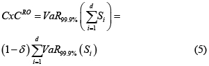 Donde Si denota la pérdida por riesgo operativo anual en cada línea operativa i para todas las d líneas. Y δ es un porcentaje por beneficios de diversificación.