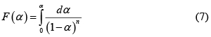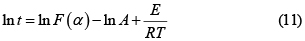 donde F(α) está definido en la Ec. 7. En forma similar al caso diferencial el parámetro E se obtiene de la pendiente de la gráfica ln t frente a 1/T.