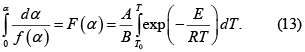 Con datos no isotérmicos el análisis integral se basa en la velocidad de calentamiento definida en la Ec. 2. Remplazando dα/dT=(1/B)(dα/dt) en las Ecs. 3-4 se obtiene