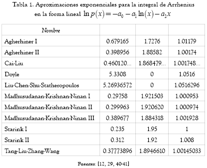 Como la mayoría de los métodos para calcular los valores de los parámetros cinéticos se basa en formas lineales, el uso de aproximaciones para la integral de Arrhenius facilita el ajuste de datos al remplazar la integral por una función. De esa forma se pueden obtener nuevas expresiones, tal como se mostró en este trabajo.