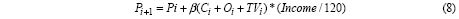 Donde P es cada necesidad y β es 0.01 para PN y 0.001 para el resto de necesidades; además, el efecto de ingreso es proporcional al incremento sobre el ingreso mínimo en una comunidad ideal que posee 25 granjas.