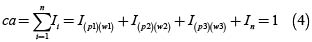 p= indicador ponderado, w= peso o valor de influencia del indicador