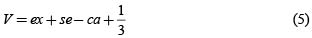Teniendo en cuenta que ex, se, y ca pueden tener un valor máximo de 1, entonces la vulnerabilidad puede variar entre -1 > V > 2. No obstante, para una mejor interpretación de los valores a través de una escala de 0 a 1, se aplica una redistribución a los rangos teniendo en cuenta la siguiente expresión matemática: